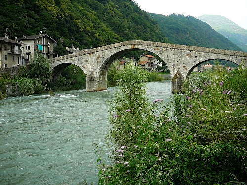 Il ponte di Ganda fu costruito nel 1778 dall’architetto milanese Francesco Bernardino Ferrari, dopo che un’alluvione aveva distrutto il precedente ponte degli inizi del ‘500.
