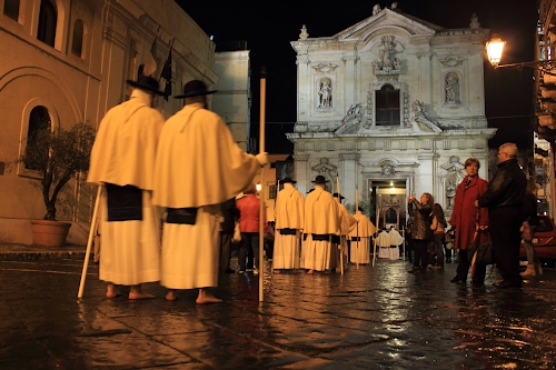 Altri tag (senza riscontro): pietra, religioso, devoti, nero, credenti, penitenti, rievocazione, strada, corteo, riflessi, religione, fedeli, scalzi, bastone, ceri, nudi, notte, coppie, settimana, santa, pavimento, abiti, mantelle, santo, cattedrale, mantelli, figuranti, uniformi, clericale, portone, giallo, passione, bagnato.