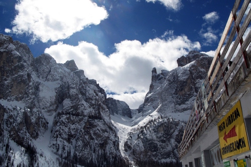 sulle dolomiti, quando il cielo diventa di un blu scuro le nuvole hanno un colore magico....
