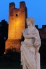 Tag: torre, alberi, lampione, nuvole, cielo, merli, casa, piante, automobile, strada, ringhiera, verde, persone.