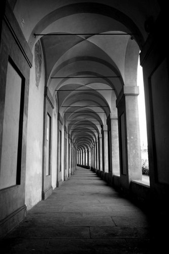 Altri tag (senza riscontro): ombre, grigio, porticato, simmetria, volta, muretto, linee, logge, volte, profondità, chiaroscuro.