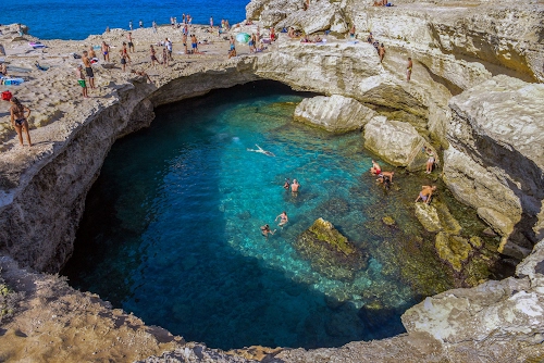 Foto dell'autore Diana Cocco candidata al contest fotografico balneazione su Dizy. Data inserimento: mercoledì 3 luglio 2024. Titolo: Balneazione a Melendugno - Grotta della Poesia
