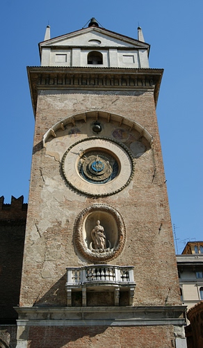 Tag: torre, statua, balcone, orologio, cielo, campanile, azzurro, campana, merli, balaustra, cerchio, case, scultura, arco.