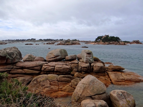Si trova nella Plage de Saint Guirec - francia. Il colore rosa dei graniti è dovuto a una particolare miscela di quarzo, mica, feldspato e ossido di ferro. Dopo l'ossidazione ad una temperatura di circa 800 ° C, il granito diventa rosa. Questo è un fenomeno raro che si è verificato solo in Bretagna, in Corsica e in Cina.