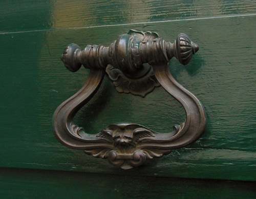 Tag: batacchio, verde, porta, legno, metallo, ferro, portone.