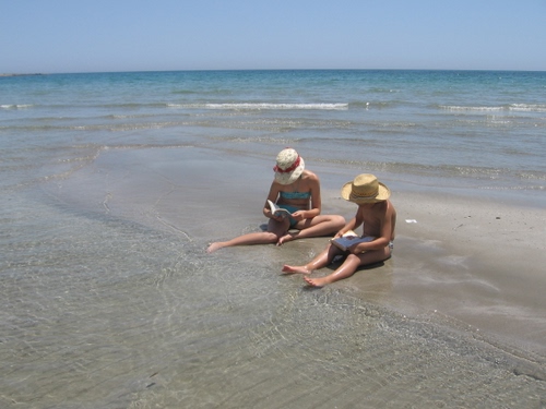 Eh sì, sono i miei figli che si erano messi a leggere su una secca vicino a riva all'Oasi di Vendicari, stupenda. |