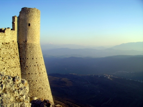 Ops, Rocca Calascio da recensire :)))) Un buon punto di vista, non molto comune, con Castelvecchio Calvisio sullo sfondo. Il punto forte dello scatto è il contrasto fra le pietre illuminate dal sole della torre e i vari azzurri delle colline parzialmente annebbiate, che spariscono sull'orizzonte. Molto valida la scelta dell'inquadratura, cioè includere le colline a scapito del cielo senza nuvole. Una scena piacevole, che fa capire come sia fotogenico questo posto con qualsiasi condizione meteo. L'unico aspetto negativo è la non perfetta messa a fuoco sulla rocca. |
