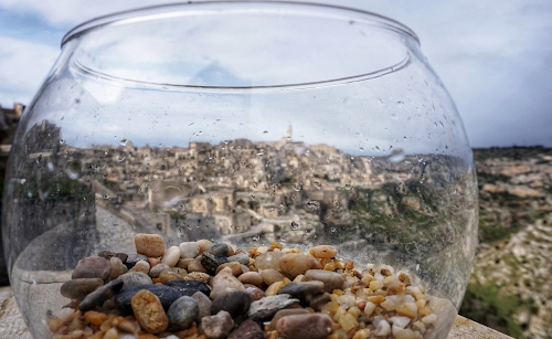 Foto dell'autore bitreker candidata al contest fotografico attraverso su Dizy. Data inserimento: venerdì 9 maggio 2025. Titolo: Matera attraverso un vaso di vetro