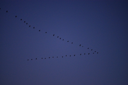 di notte una "V" nel cielo