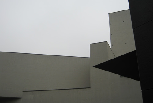 Scorcio dell'esterno del Teatro degli Arcimboldi, a Milano, in una giornata grigia.
