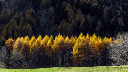 Tag: alberi, bosco, prato, giallo, autunno, verde, larici, montagna, foresta, foglie, natura.