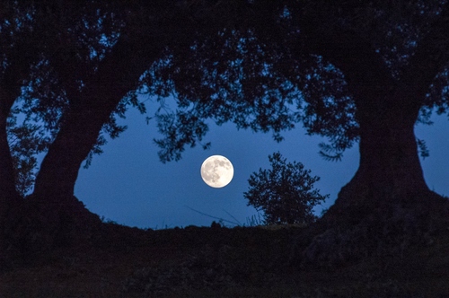 Molto bella. La luna piena incorniciata dalla vegetazione. Soddisfacentemente definiti la luna, gli alberi e le fronde. In simbiosi il nostro pianeta con il suo satellite. Si potrebbe valutare se il soggetto ,la luna, non sia troppo al centro. Potrebbe essere una scelta consapevole,ma spetta all'autore il messaggio che ha voluto trasmettere. Anche il terreno,se fosse meno scuro ed indefinito, avrebbe potuto arricchire la cornice,ma di difficile realizzazione. Il blu del cielo contrasta bene ,ma lo avrei reso più chiaro.