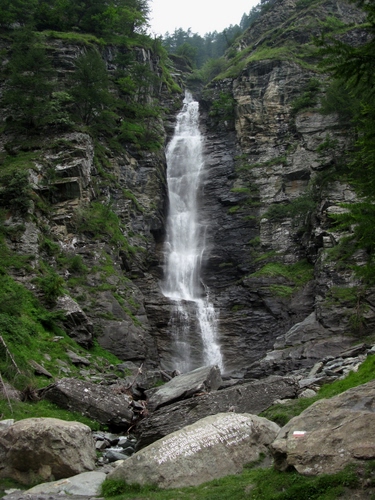 La Cascata del Pis si trova sul percorso che da Villanova porta al rifugio Jervis nella conca Prà in Val Pellice.