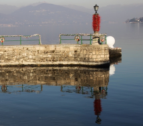 Un piccolo molo con decorazioni natalizie ad Arona, sul Lago Maggiore.