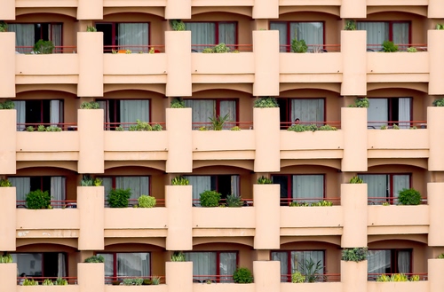 Tag: balconi, finestre, piante, palazzo, facciata, verde, tende, geometrico, terrazzi, fiori.