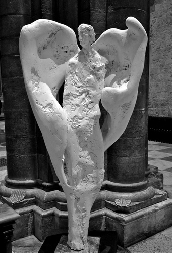 Opera in gesso dell'artista gardenese Paul Moroder, esposta nel duomo di Trento.