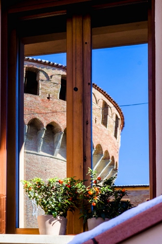 Dozza il torrione della Rocca Sforzesca in finestra