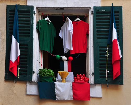 Nelle vie di Ventimiglia Alta (la città storica) nel 2011 si è svolta la gara indetta dal Comune. Occorreva addobbare le finestre, i balconi, i portoni con i colori della bandiera. Ne ho fotografate alcuni. Il titolo è in ligure, come da bando: la più bella finestra