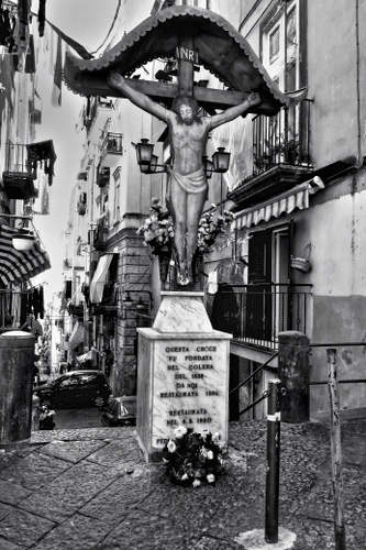 Nei vicoli dei Quartieri Spagnoli a Napoli.