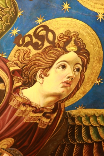 Angeli affrescati sulla volta della cupola nella cattedrale di Valencia.