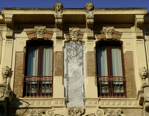 Tag: finestre, liberty, tende, ringhiere, leoni, balconi, vetri, due, ringhiera, palazzo, decori, mascheroni, facciata.