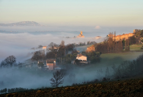 Foto dell'autore stefano753 candidata al contest fotografico nebbia su Dizy. Data inserimento: mercoledì 4 febbraio 2015. Titolo: Una densa nebbia avvolge l'abitato di Tavullia