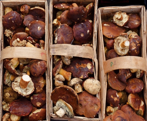 Tag: funghi, marrone, cibo, cestini, cassette, legno, ceste, porcini, esposizione, manici, vendita.