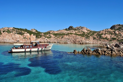Tag: barca, mare, scogli, acqua, rocce, azzurro, riva, persone, cielo.