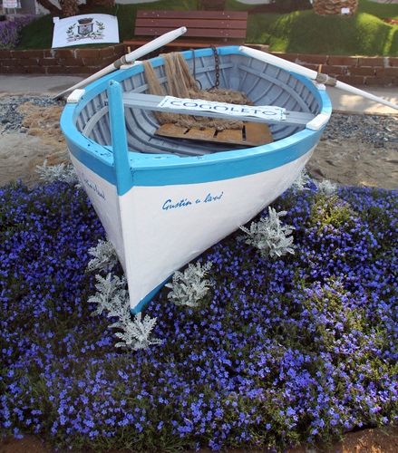 Tag: barca, fiori, remi, aiuola, stemma, panchina, viola, azzurro, celeste, remo, bianco.
