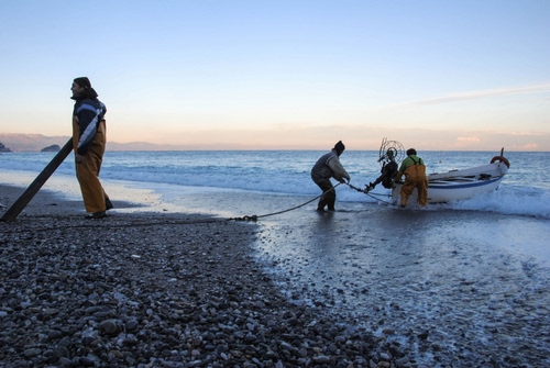 Tag: mare, barca, pescatori, spiaggia, corda, uomini, reti, sassi.