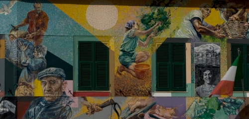 Tag: murales, finestre, bandiera, colori, tricolore, disegno, muro, cesto, due, murale, persone.