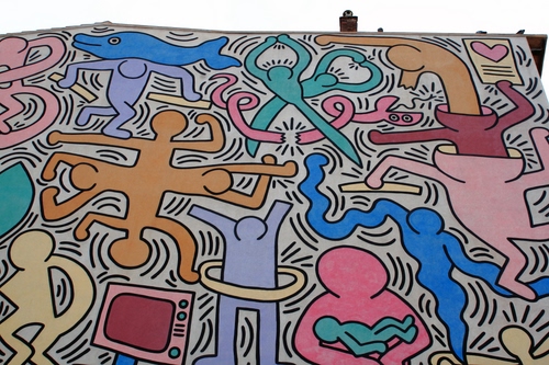 Il murales -TUTTOMONDO - ha un'estensione di 180 metri quadrati - opera di Keith Haring «l’artista che disegnava gli omini». Realizzato a Pisa nel 1989 è l’ultimo grande murales realizzato dall’artista prima della sua morte, avvenuta pochi mesi dopo, a soli 31 anni. Keith Haring, è un’icona della cultura e della pop art americana degli anni ’80: writer, pittore sui muri, tra i principali esponenti del graffitismo insieme a Jean-Michel Basquiat. I suoi disegni nella metropolitana di New York vennero subito notati e non passò molto tempo prima che riuscisse a esporre numerose opere nei musei di tutto il mondo.