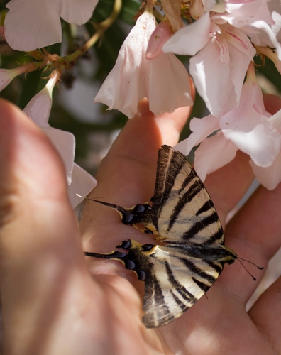 Intorpidita in una calda giornata di giugno.Con il profumo degli oleandri spicca il suo volo volteggiando tra gli origani selvatici delle dune di Campomarino di Maruggio.
