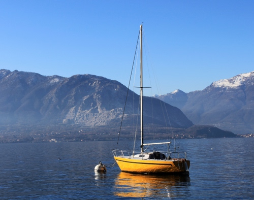 All'ancora davanti a Suna (VB), sul Lago Maggiore.