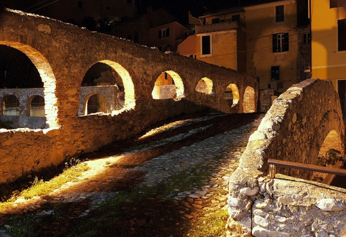 Tag: ponte, archi, finestre, notturno, luci, notte, pietre, borgo, sassi, case.