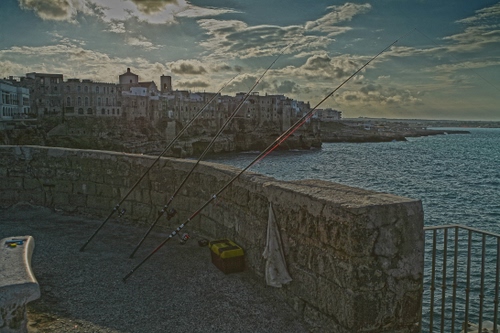 Polignano a Mare canne da pesca in attesa che il pesce abbocchi...