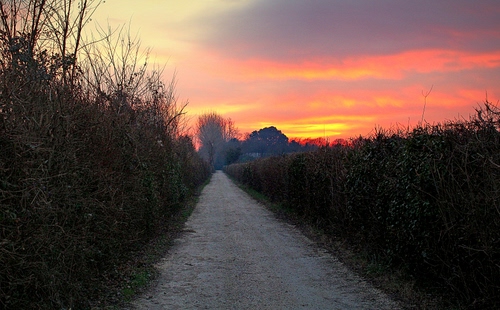 Mi piacciono le siepi e, ovviamente, il tramonto. |