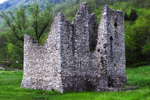 Tag: verde, alberi, prato, ruderi, rudere, torre, pietre, erba, castello, rovine, campo, sassi, pietra.