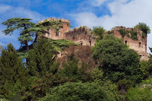 Tag: castello, alberi, verde, rudere, ruderi, nuvole, cielo, finestre.