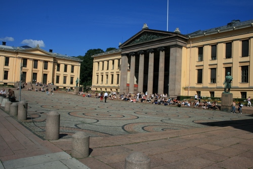 L'estate norvegese è talmente breve che ogni occasione è buona per stare all'aperto. Anche gli studenti preferiscono la piazza antistante l'università alle loro aule.