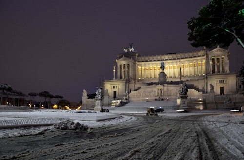 Tag: neve, roma, piazza, monumento, notte, inverno, altare, strada, albero.