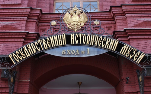 L'insegna all'ingresso del Museo Statale di Storia sulla Piazza Rossa di Mosca.