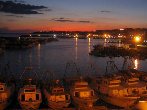 Veduta del porto di Sciacca poco dopo il tramonto.