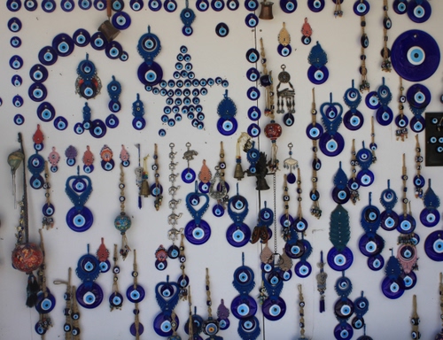 Parete decorata con tanti "occhi di Allah", in Turchia.