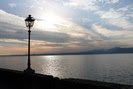 Tre luci diverse. Il lampione ,la scia dell'aereo ed il tramonto.