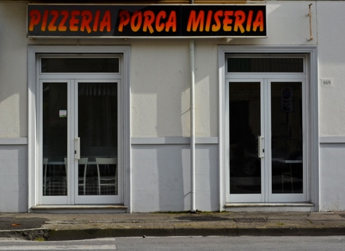 la pizzeria si trova a Viareggio, quartiere darsena, in via M. Coppino.Ho visto questa strana insegna mentre ero ferma al semaforo e l'ho fotografata. |