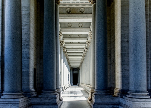 La prospettiva "compressa" e la luce centrale in contrasto con l'ombra delle colonne in primo piano mi fanno apprezzare questa foto ![]() |