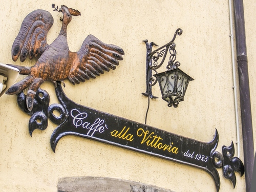 Tag: insegna, lampione, caffè, aquila, ferro, ali, uccello, scritta.
