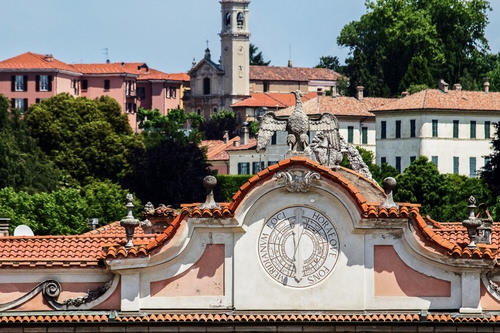 Sulla facciata del Palazzo Estense, fotografata dai giardini.