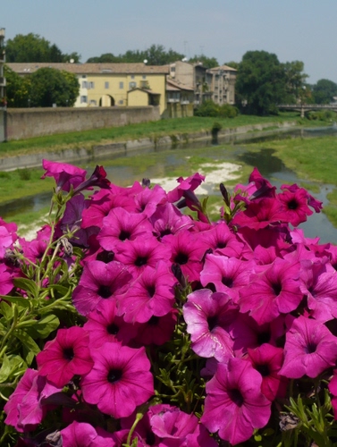 Fiori sul ponte sul torrente Parma, qualche estate fa.
